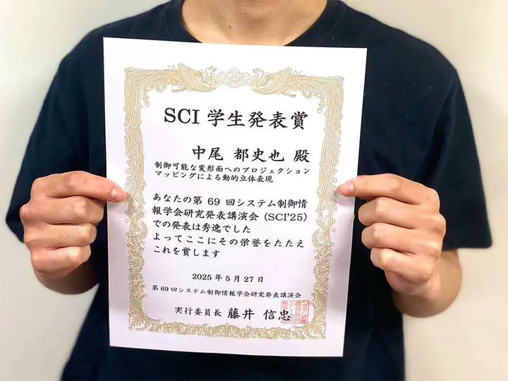 First-year master’s student Nakao received the SCI Student Presentation Award, which is presented to students who demonstrate exceptional presentation skills at SCI’25.