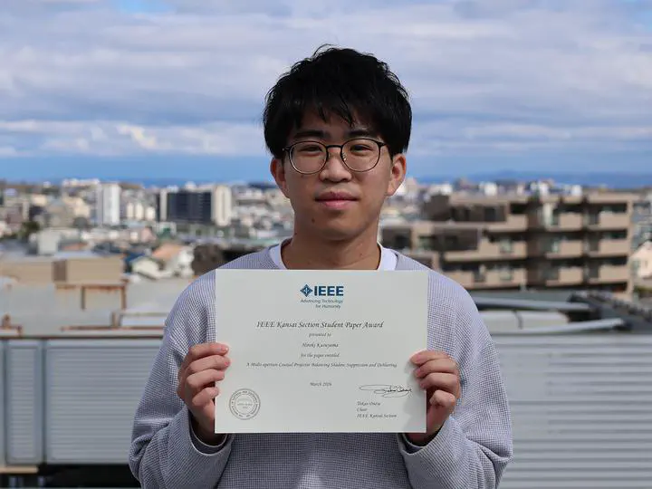 博士学生の楠山が IEEE 関西支部 学生研究奨励賞 を受賞しました。