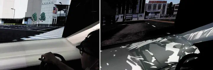 プロジェクションマッピング(PM)は、製品デザインのプロセスにおいて非常に有用です。物理モックアップとデジタルモックアップを継ぎ目なくつなぐことができ、新たな質感・色・形状を、物理モックアップを都度作り直すことなくインタラクティブに検討することが可能です。PMは自動車の内装デザインにおいて効果的であることが示されていますが、従来の研究では主にダッシュボードやインストルメントパネルのデザイン支援に限定されており、実際の運転環境下での評価は行われていませんでした。本研究では、ダッシュボードに加えAピラーまでを含む、自動車内装全体を対象とした意匠設計支援システムを新たに提案します。さらに、デザイナーが実際の運転状況に近い環境でデザインを評価できるよう、モーションプラットフォームを備えたドライビングシミュレータをPMシステムに統合しました。試作システムの構築を通じて、提案するシステムの実現可能性を実証するとともに、ユーザスタディを通じて、PMを活用した自動車内装デザインにおける設計ガイドラインを導出し、より良いユーザ体験の提供を目指しています。